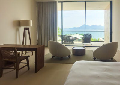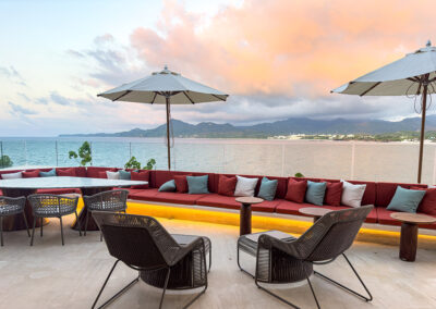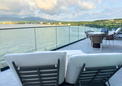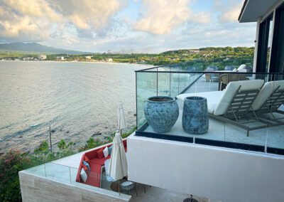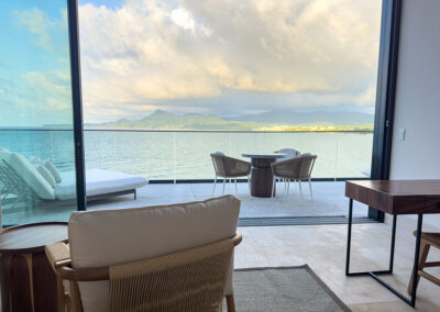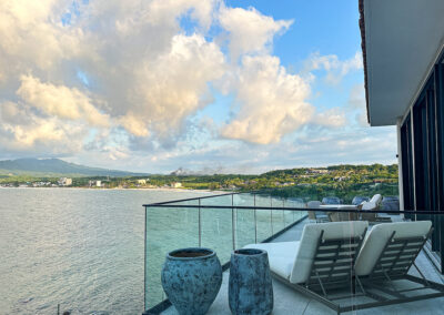 *Expansive private balcony with a lounge area and a dining table for two, offering breathtaking ocean views