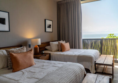 Perched above the blue expanse of the Pacific Ocean, Casa Selva is a masterpiece of modern design, crafted for those who seek privacy, serenity, and barefoot elegance. Nestled within the exclusive gated community of Pontoquito, this newly built villa blends clean architecture with natural elements—smooth stone, native woods, and open-air living—creating a luxurious sanctuary surrounded by jungle and sea.