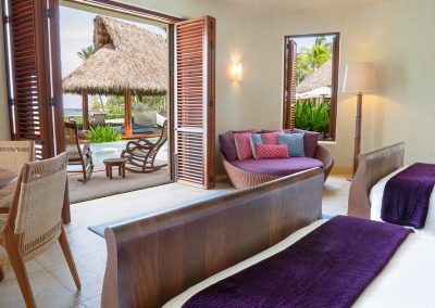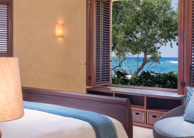 MASTER RESIDENCE– This building comprises of 3 bedrooms, l living area, a fully equipped executive study, spa treatment/massage room (or nursery), private master terrace with Jacuzzi, and roof terrace. It has direct access to the pool and all accommodations have ocean views.