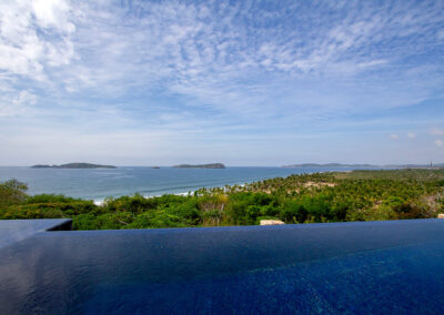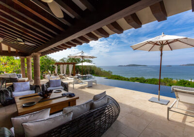 Savor the dreamy Pacific and the warmth of Mexico. A grand 6-bedroom villa estate on 2.6 lush acres with 430 feet of ocean view frontage. Elegant private suites surround a central great room, trellised patio pavilion, infinity pool, hot tub, and fire pit. Locally sourced stone, luxurious décor, and a Latin American art collection. Superb for relaxing and entertaining.