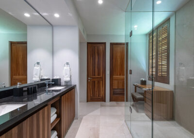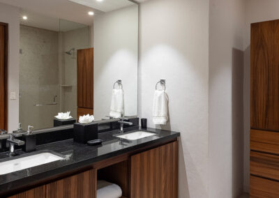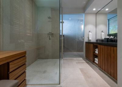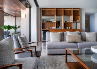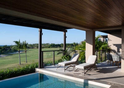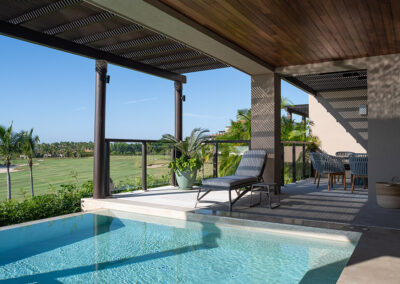 Ideal for families or friends traveling together, the condo features two spacious suites with king beds and private spa-style bathrooms, plus a third suite with two queen beds and its own ensuite. The open-concept living and dining areas flow effortlessly onto a generous oceanview terrace complete with a private plunge pool and sunset bar—perfect for whale watching or sipping cocktails as the sun dips into the sea.