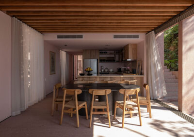 Each ‘morada’ it’s up to 8 people in four ensuite bedrooms including the primary bedroom. e whole Rosa Morada property is available for a complete booking that will nurture a big group up to 32 guests. Each ‘morada’ features four spacious bedrooms with private bathrooms, comfortable TV room, modern and fully euipped kitchen, open living space, ocean-view terrace, and a sky-reecting plunge pool. e exterior circulation of each house and the independent oors provide privacy from sta and between guests. A discreet team serves each property, alongside a dedicated Private Chef and Morada Concierge.