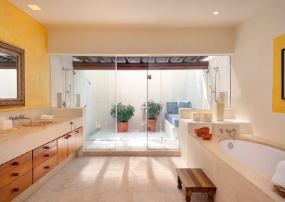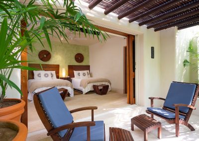 All 9 luxurious fully-appointed suites and guestrooms are bright, airy, and decorated with Mexican handicrafts, custom-made luxury furniture and feature Four Seasons beds, mattresses, linens, pillows, welcome amenities, and services. The Master Suites have access to a private patio with Jacuzzi and stunning ocean views, other suites, and all guestrooms offer walk-in closets, screened elegant shutters, luxury furniture and tasteful decoration, flat screen television, air conditioning, marble bathrooms and ample terraces.