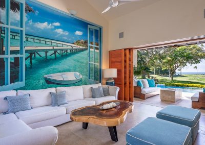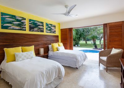 Surrounded by lush gardens, fairways and greens, facing Jack Nicklaus Pacifico golf course’s fairway #3, and 190 yards from a white sandy beach, ideal for morning walks, shell combing, sunbathing, safe swimming and sunset watching, you will experience the quintessential Punta Mita lifestyle in this immaculate property, and will enjoy space and comfort with a south-of-the-border, fun, beach feeling.