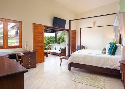 The 2nd bedroom is ample and offers a king-size bed and access to the pool patio