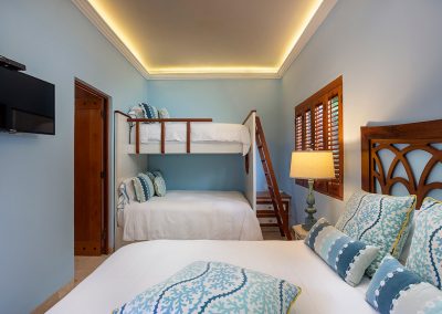 The 4th bedroom is the kids cave: a fun room for all ages with 1 bunk bed, 1 double and 1 single-size bed with cool colors and funky decoration.