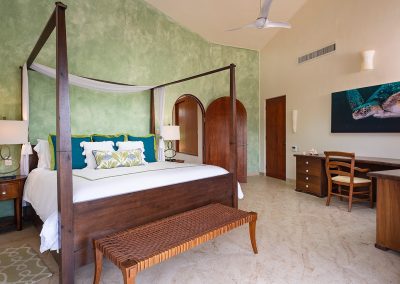 The Master Suite is spacious and features a king-size bed, an oversized terrace with lounge area, golf and ocean views