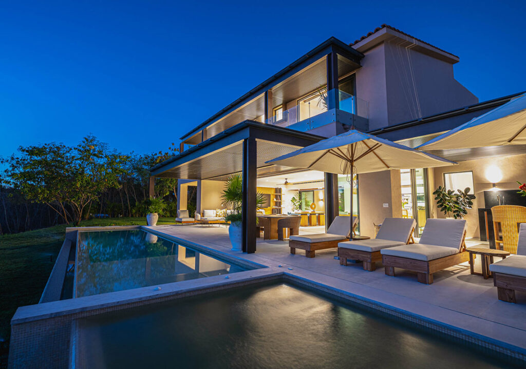 Picture a luxurious villa in Punta Mita, Mexico, situated on the stunning Pacific coast. This resort provides breathtaking views of the golf course, perfect for relaxation and enjoyment by golfers and nature enthusiasts. The villa boasts a harmonious fusion of modern and traditional Mexican design, characterized by clean lines and natural features. Immerse yourself in the beauty of the property’s expansive terraces, featuring comfortable seating, a captivating infinity pool, and lush tropical landscaping, perfect for enjoying the sun or hosting memorable gatherings.